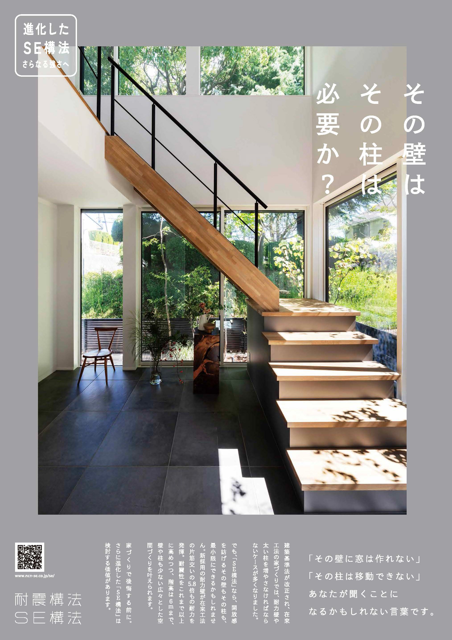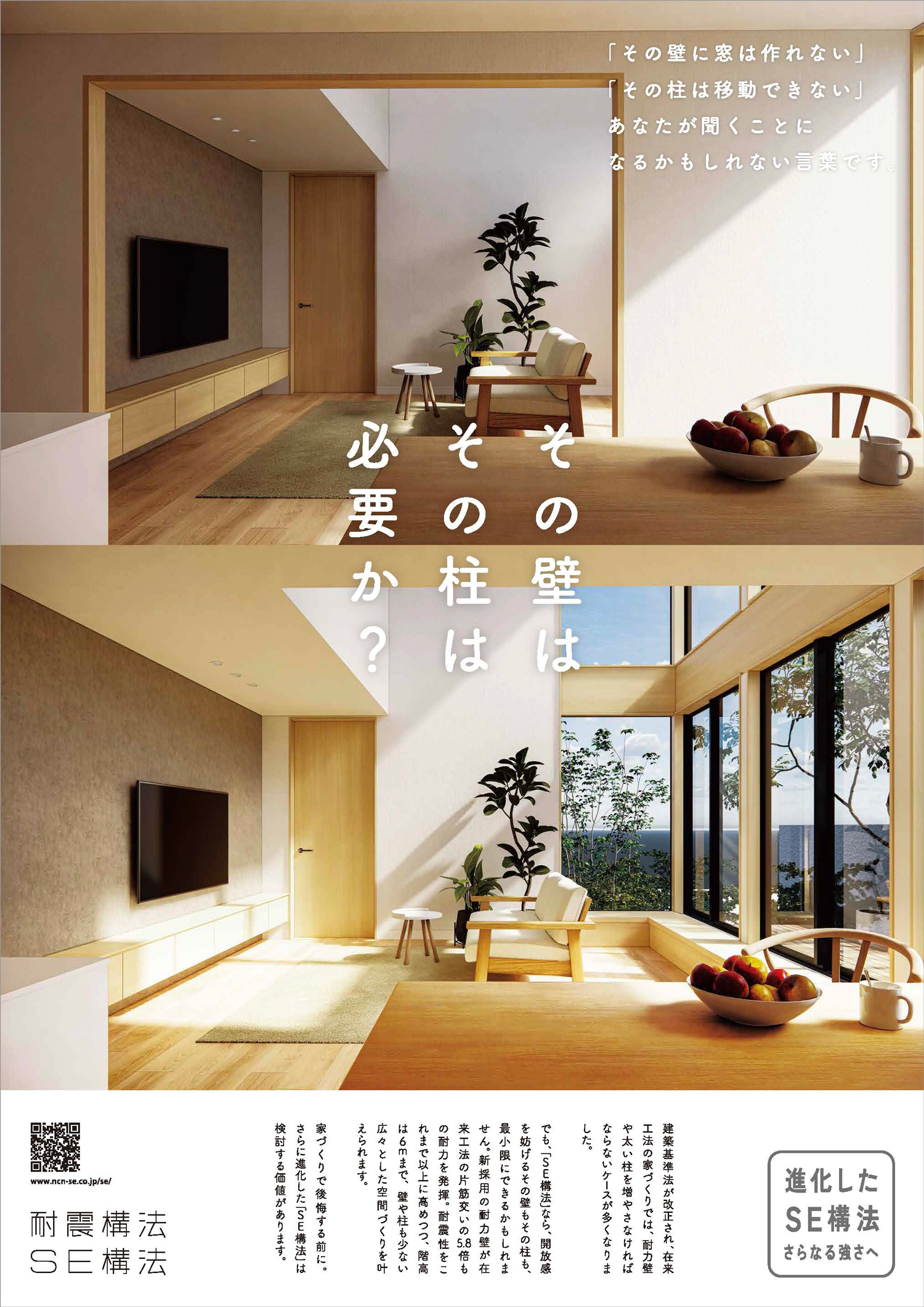 株式会社エヌ・シー・エヌが提供する「SE構法」がリニューアルし、より強い耐震性と、自由な空間づくりを実現。提携工務店や、家づくりを検討しているお客様に新しいSE構法を知ってもらうためのメッセージとポスターデザインを担当しました。